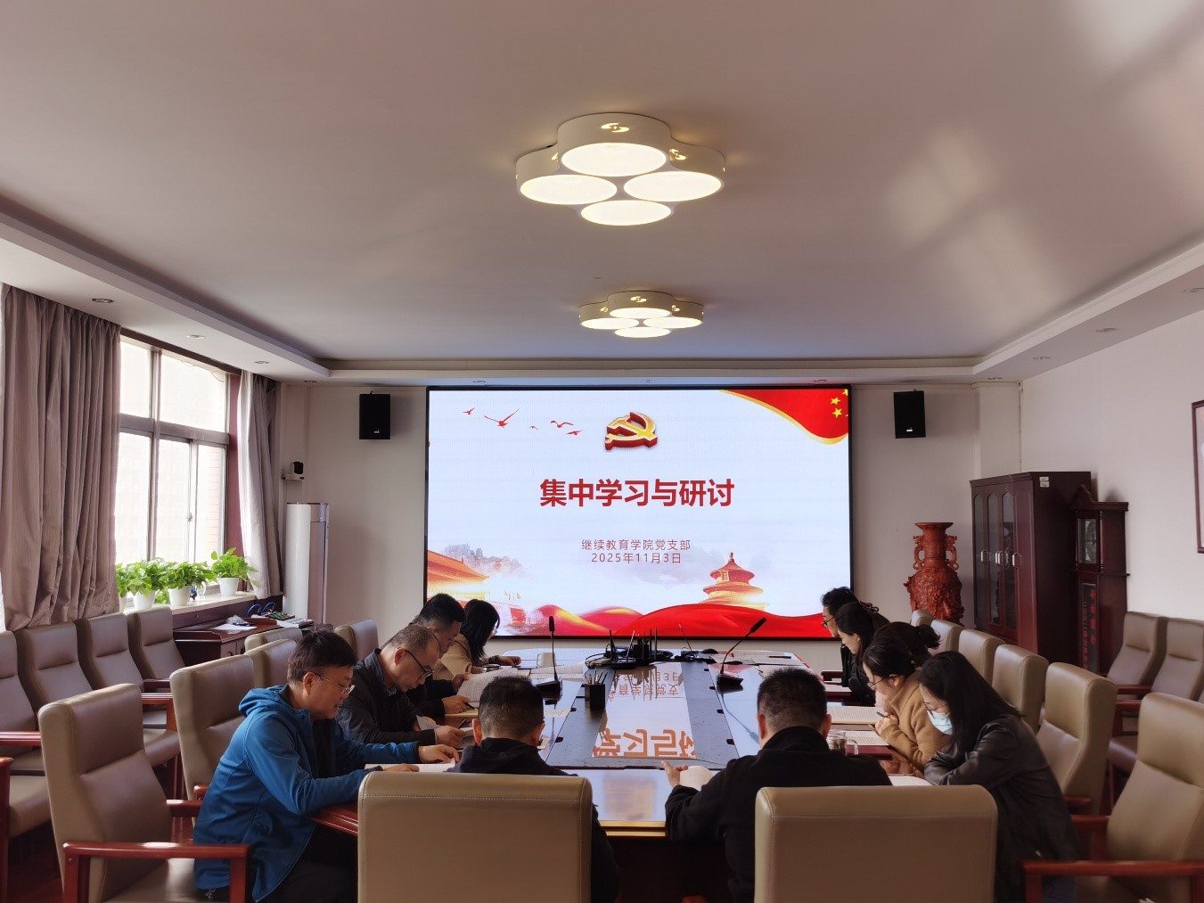 2025年11月3日,365英国官网党支部组织全体党员集中学习与研讨“党的作风建设与八项规定精神”,会议由党支部书记涂帅主持。