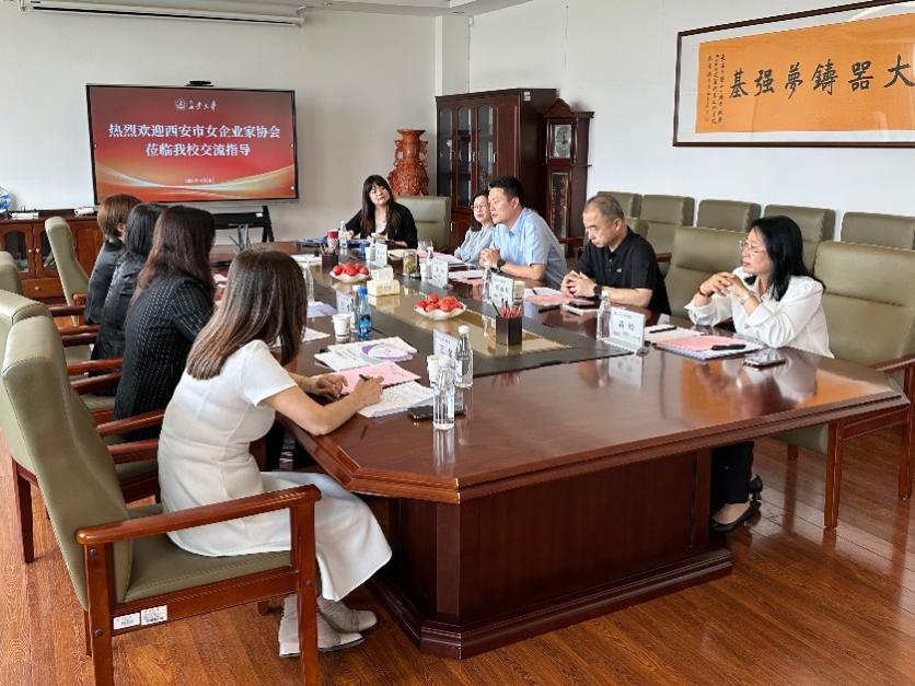 为深化校企协同创新,赋能女性企业家成长,4月18日下午,西安市女企业家协会党支部书记王蚕,副会长、长安石榴花书院执行院长高伊人一行来我院交流座谈。365英国官网院长涂帅、副院长邱旭辉及相关部门负责人出席会议。