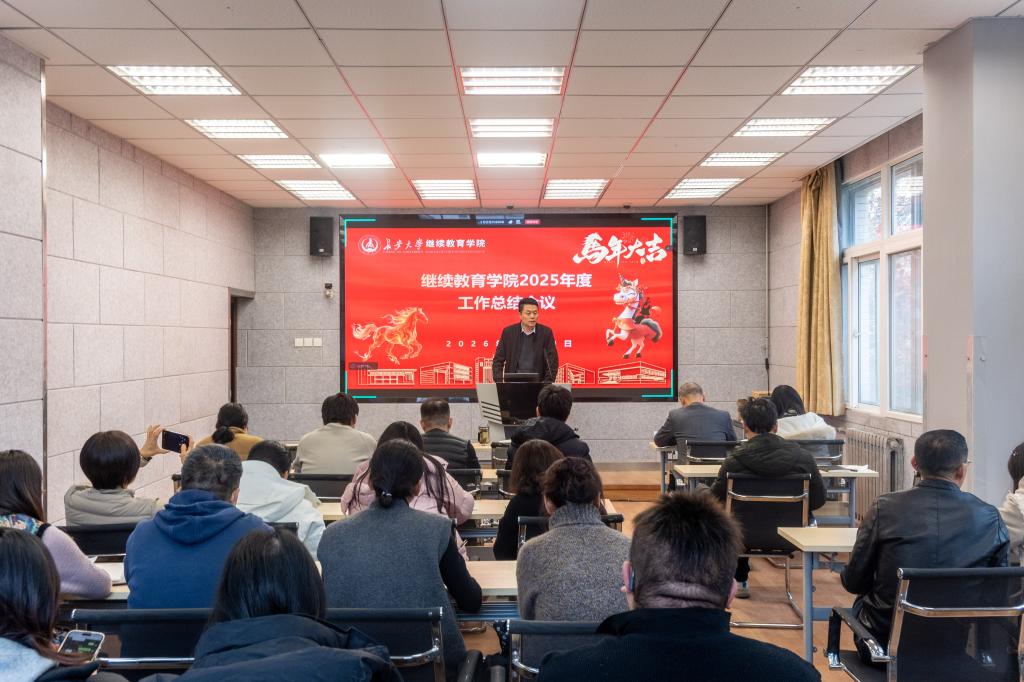 会上,涂帅肯定了全院年度工作成效,强调要持续完善激励机制、强化纪律意识,营造务实高效的工作氛围;扎实做好寒假各项保障工作,确保相关工作正常开展。2026年,学院要以综合改革为核心,坚持“以转型求发展,以创新求突破”,推动学院工作向更大规模、更高水平发展。全体教职工要统一思想,明确目标,履职尽责,共同谱写继续教育事业高质量发展新篇章。