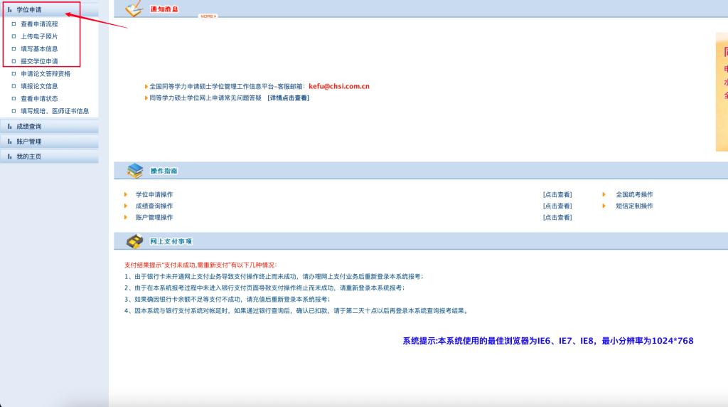三、按要求查看学位申请流程。